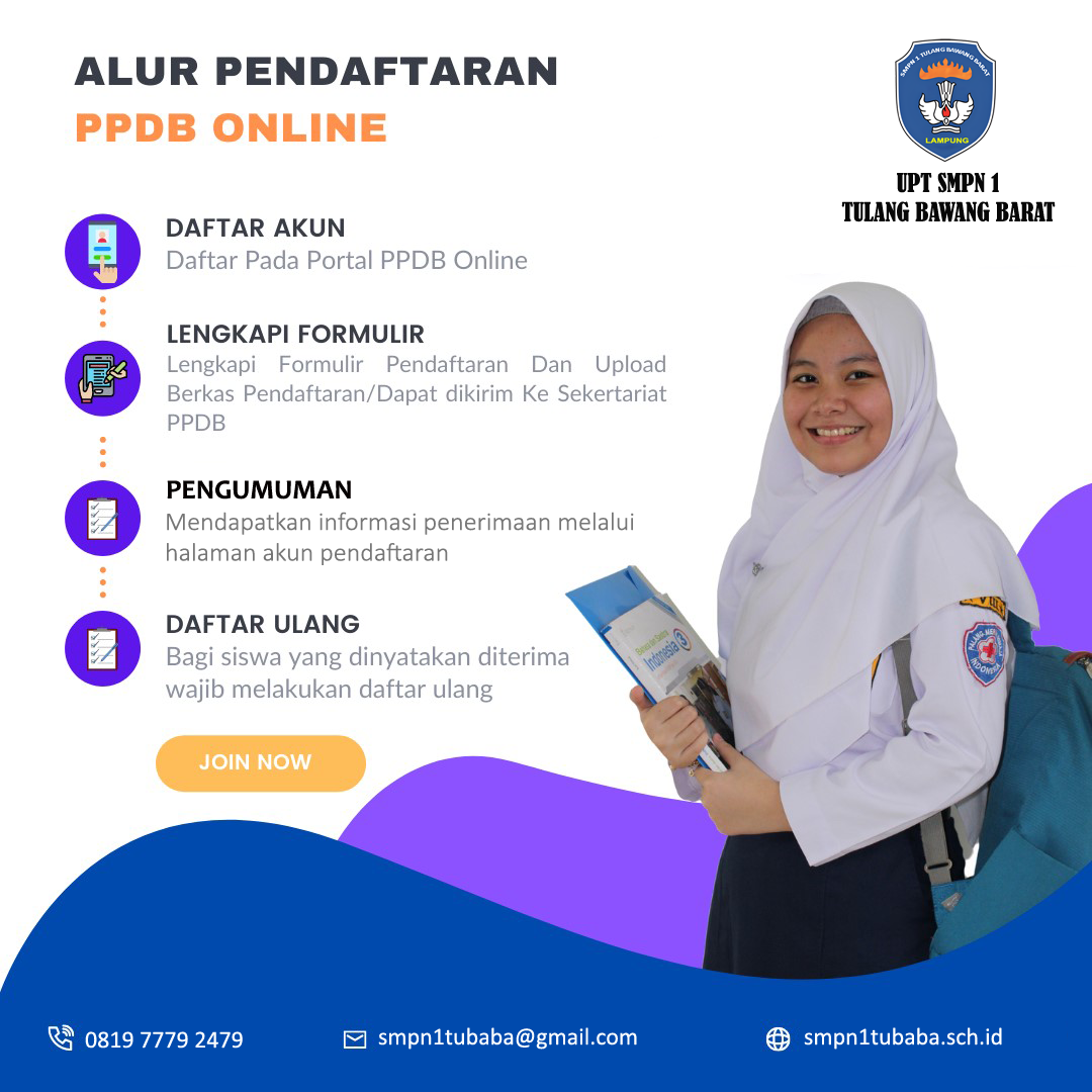 https://smpn1tubaba.sch.id dan melalui papan pengumuman di SMP Negeri 1 Tulang Bawang Barat